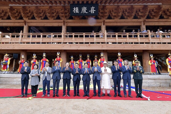 이날 희경루 중건식은 국가무형문화재 ‘피리정악 및 대취타’ 광주호남지부와 광주시무형문화재 ‘광산농악’의 행렬을 시작으로, 희경루 현판 제막식, 중건고유(告由)제, ‘2025년 세계양궁대회’ 성공개최 희망 활쏘기 순으로 진행됐다. 광주만의 인공지능·문화 기술로 희경루 방회도 재연공연도 진행했다.