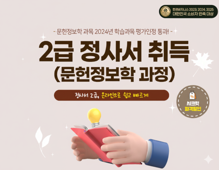 문헌정보학 과정은 방대한 문헌자료의 수집, 분류, 데이터 관리 등 전문적인 역량을 배양하며, 학위 취득 후 한국도서관협회를 통해 2급 정사서 자격증을 취득할 수 있는 기회를 제공한다.