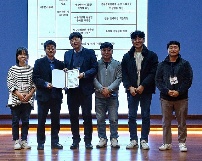 | ▲ 광주 우치동물원 관계자 등이 지난 19일 광주 센트럴호텔에서 열린 '2024년 한국동물원수족협회 정기 총회'에서 국내 동물원 평가 동물복지 우수기관상을 수상 한 후 기념촬영을 하고 있다. / 광주광역시 제공 |