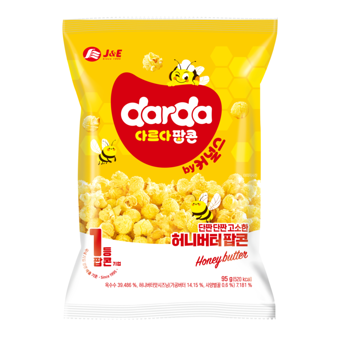 특히 ‘다르다팝콘’(제이앤이)의 허니버터팝콘은 해바라기유를 사용하여 고소한 맛을 높였고, 포장에서도 환경을 생각한 친환경 녹색 필름을 사용하였다. 이번 허니버터팝콘은 전국 킴스이랜드 매장에서 다르다팝콘의 인기 제품인 ‘다르다 고르곤졸라 치즈팝콘’ 및 ‘다르다 피자칩’과 함께 만나볼 수 있다.
