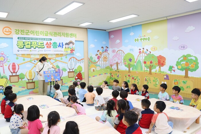 [강진=정찬남 기자] 전남 강진군 어린이급식관리지원센터(센터장 이인옥)는 지난 7월 18일부터 7월 28일까지 약 150명의 어린이를 대상으로 ‘롱(long)컬푸드 삼총사’ 교육을 실시했다고 밝혔다.