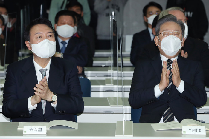 이에 윤 후보는 같은 날 춘천에서 열린 강원도 선대위 발대식 후 기자들과 만나 "이 후보 말에 대해서는 대꾸하고 싶은 생각이 없다"고 일축했다.