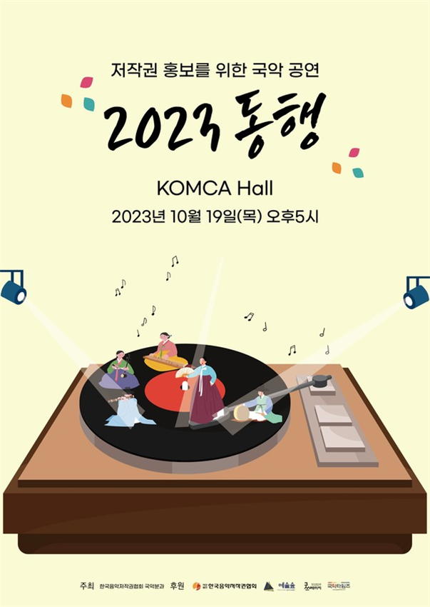 창작자들의 저작권 보호에 앞장서고 있는 (주)예술숲(대표이사 김면지)이 창작국악의 발전 및 국악 저작권에 대한 대중들의 인식 개선을 위한 국악공연 '2023 동행'을 오는 19일 오후 5시 강서구 내발산동에 위치한 콤카홀(KOMCA Hall)에서 무료로 개최한다.