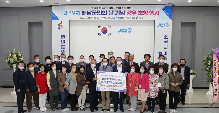 재경해남군향우회에서는 해남군의 장학사업기금 500억 원 조성 소식을 듣고 군민의 날 전야행사에 참석하면서 향우회원들이 십시일반 모은 성금을 기탁했다.