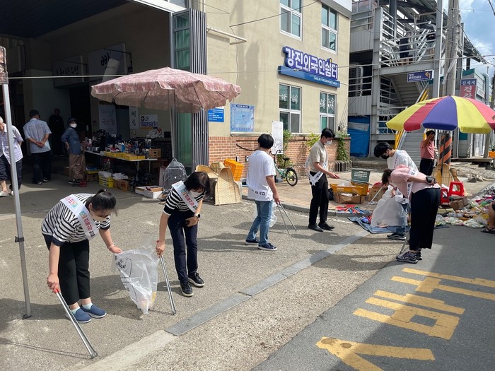 군은 지난 4일부터 매 장날마다 “강진읍 시장을 깨끗하게, 쾌적하게, 산뜻하게”를 캐치프레이즈로 강진읍시장상인회, 사회단체 봉사회, 공무원 20여 명이 참여하는 가운데 종합동, 수산동과 시장 주변 도로 등에서 쓰레기 수거와 청결활동을 추진하고 있다.