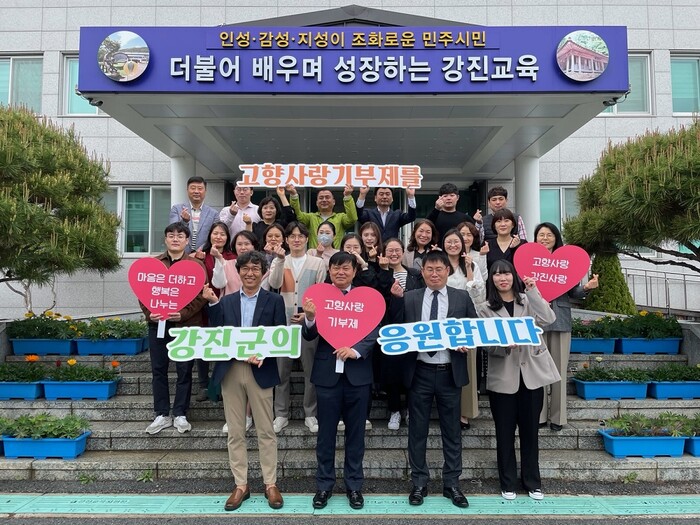 전남 [강진=정찬남 기자] 강진교육지원청과 직원 일동이 지난 19일, 강진 고향사랑기부제 응원에 나섰다.