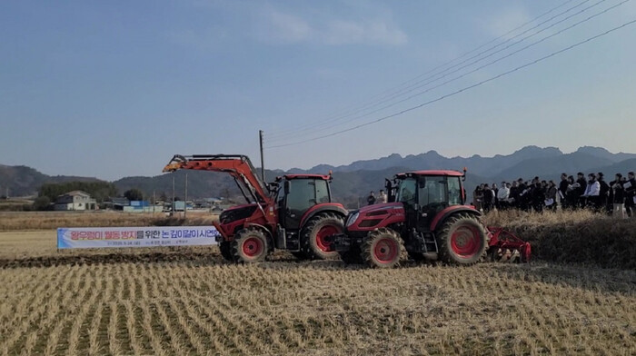 | ▲ 논 깊이갈이 시연 / 해남군 제공 |