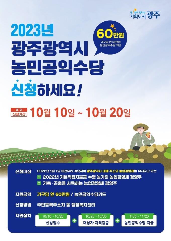 | ▲ 농민공익수당 추가접수 포스터 / 광주광역시 제공 |
