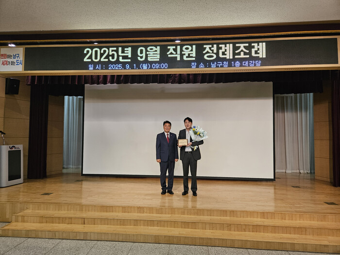오은택 남구청장이 김도환 대표에게 직접 감사패를 수여했으며, 남구청은 지난 7월 재난대응 안전한국훈련 협조 공로에 이어 올해 두 번째로 그랜드모먼트에 감사패를 수여했다.