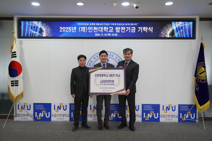 기탁식에는 인천대 이인재 총장을 비롯해 기부자인 이너트론 조학래 대표, 윤병조 발전기금 상임이사 등이 참석, 발전기금 전달과 함께 감사패 수여식이 진행됐다.