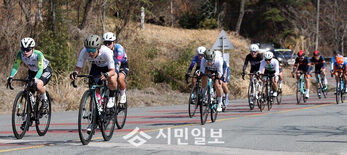 [강진=정찬남 기자] 4일 제73회 3.1절 기념 강진 투어 전국도로사이클 대회 여자 고등부, 일반부 대회 참가선수들의 역주