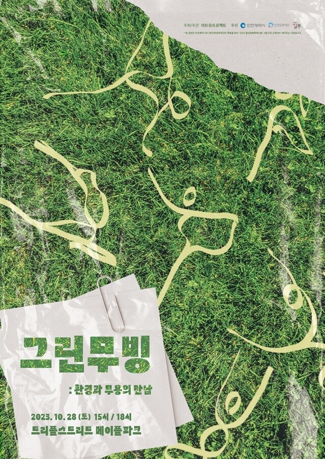 [시민일보 = 이창훈 기자] 무용단 아트유프로젝트가 ‘그린무빙: 환경과 무용의 만남’을 주제로 인천 송도 트리플스트리트 메이플파크에서 28일 오후 3시와 6시에 2차례로 공연한다.