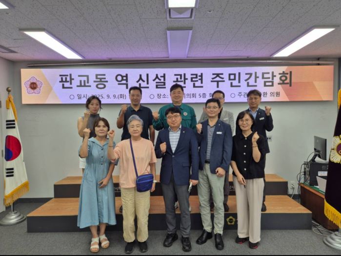 [성남=오왕석 기자] 성남시의회 국민의힘 김종환 의원(판교·백현·운중, 예산결산특별위원장)은 지난 9일 성남시의회에서 판교동 역 신설 및 제2판교테크노밸리 연결터널 추진과 관련한 주민간담회를 개최했다.