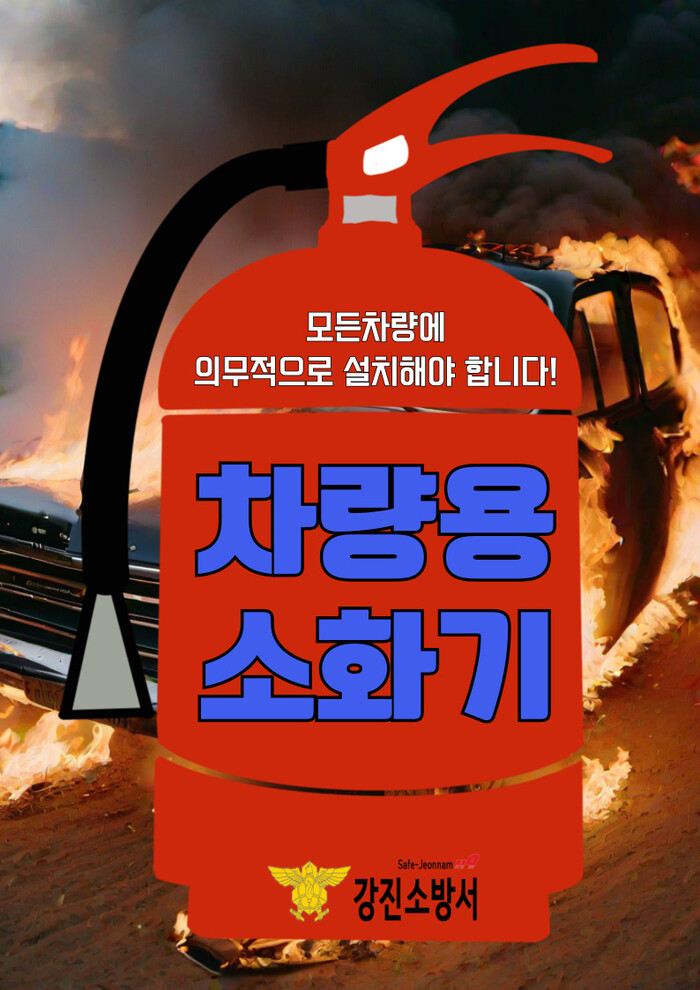 강진소방서 관계자는 “언제 어디에서든 발생할 수 있는 차량 화재를 대비해 차량용 소화기를 꼭 비치해주길 당부드린다.”고 전했다.