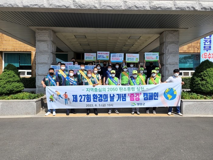 | ▲ 영암군, 지난 3일 제27회 환경의날 맞이 2030년 온실가스 감축 및 2050 탄소중립 생활실천 캠페인 기념촬영 / 영암군 제공 |