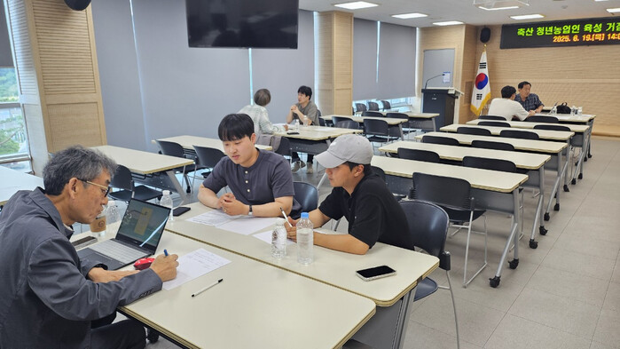 | ▲ 축산 청년농업인 대상으로 전문가 컨설팅이 진행 중인 모습.(사진=홍성군청 제공) |