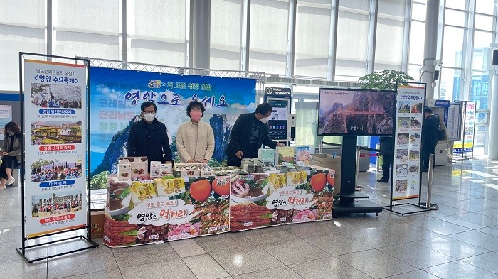 | ▲ 영암군, 광주송정역 2층 대합실에 마련된 영암군 부스에서 관광 및 농수축산물 홍보 / 사진=영암군 제공 |