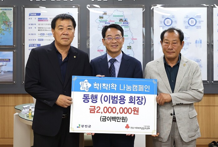 또한 동행(회장 이범용)에서는 강진군 어려운 이웃을 위해 사용해 달라며 200만 원을 지정 기탁했다.