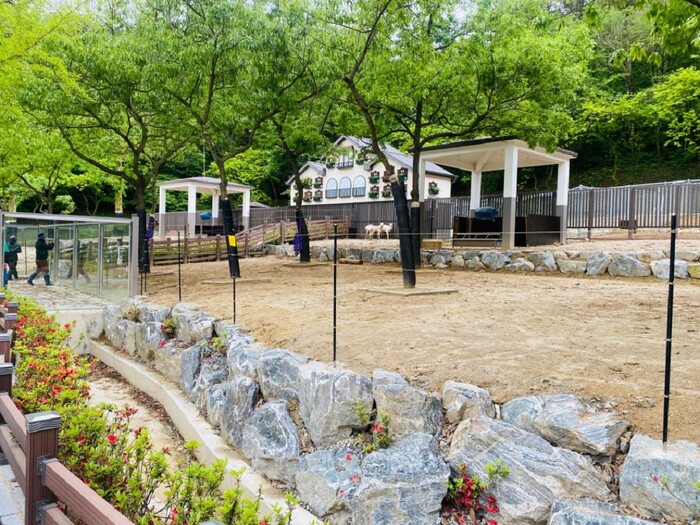 남유럽에 사는 ‘다마사슴의 고향’을 콘셉트로 새단장한 사슴사는 기존의 철조망을 없애고 함정(모트)을 설치해 관람로와 동물사를 구분했다. 또 바닥을 흙과 돌로 바꿔 친자연적으로 개선했다.