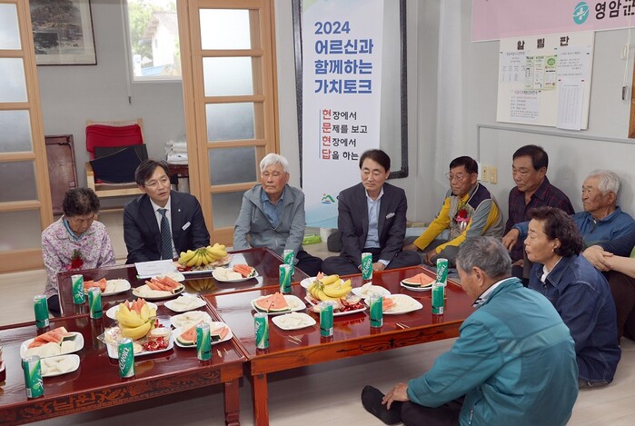 우승희 영암군수는 가치토크를 위해 영암읍·삼호읍 복지회관, 덕진면 내동경로당, 신북면 천동경로당, 학산면 덕수경로당을 찾았다.