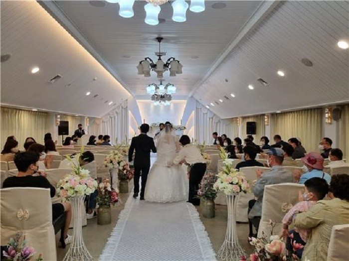 [광주=정찬남 기자] 광주광역시 공무원교육원은 코로나19 방역을 위해 2년여 간 운영을 중단한 뒤 올해 재개장한 주말 예식장에서 지난 15일 올해 첫 결혼식이 진행됐다고 밝혔다.