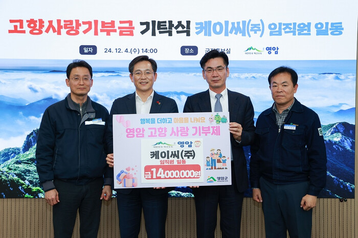 중화학공업에 쓰이는 기초정밀화학 제품인 수산화알루미늄과 알루미나를 생산하는 기업 기업인 케이씨(주)는, 영암군 대불산단 입주기업으로 지난해에도 영암군에 1,200만 원의 고향사랑기부금을 기부했다.