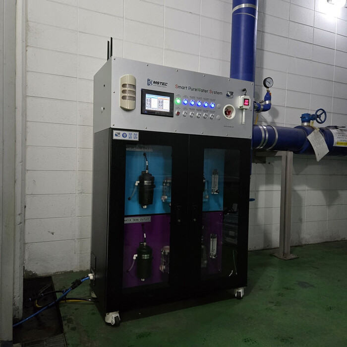 (주)엠에스텍이 개발한 스마트 수돗물 수질 측정 시스템은 수돗물의 잔류염소, 탁도, pH 변화 등 6가지 다양한 항목을 실시간으로 동시에 측정하고 측정된 데이터는 클라우드 서버로 자동 전송된다.
