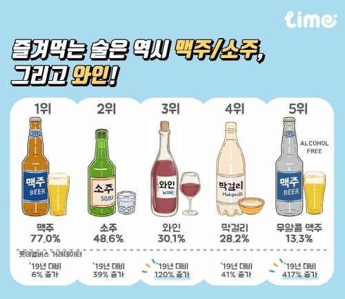 김근수 롯데멤버스 데이터사업부문장은 “다같이 빨리 취하려 하거나 술을 강권하던 음주 문화가 점점 사라지면서 전 연령대에 걸쳐 낮은 도수의 술을 가볍게 즐기는 이들이 늘어난 것으로 보인다”며 “젊은 층으로 갈수록 하이볼, 모히또 등 자신의 입맛에 맞게 섞어 마실 수 있는 혼합주나 저도수 또는 무알콜 주류를 선호하는 경향이 더욱 뚜렷했다”고 말했다.