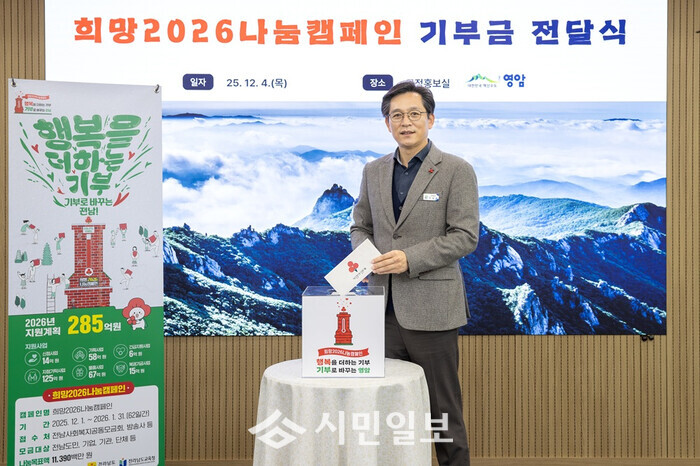 우승희 영암군수는 이날 올해 영암군 1호 기부자로 참여하며 “나눔은 건강하고 따뜻한 지역사회의 원동력이다. 영암군민 모두 참여하는 사회운동으로 키워 영암공동체를 더욱 단단하게 만들고, 나눔이 영암의 기초 문화로 뿌리내릴 수 있도록 하자”고 당부했다.