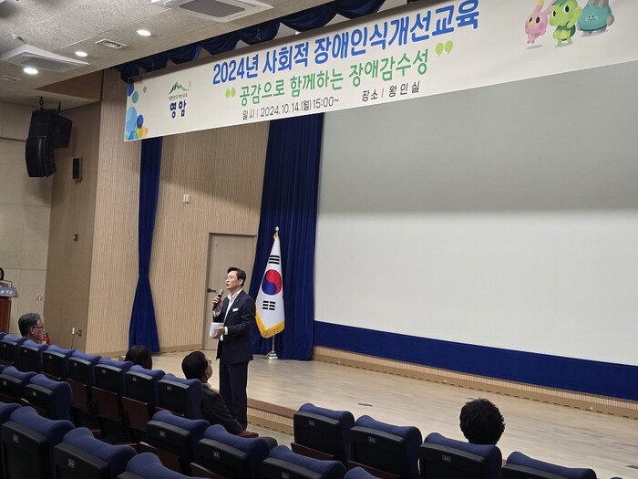 | ▲ 영암군, 지난 14일 군청 왕인실에서 공직자 대상 ‘장애인식 개선 교육’ / 영암군 제공 |