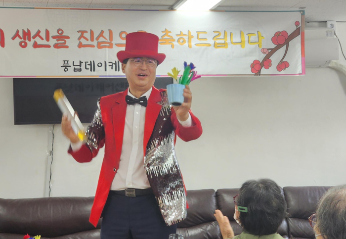 평소에도 지역사회 곳곳에서 마술 공연을 통해 이웃과 소통하고 봉사해온 이 위원장은 이번에도 따뜻한 마음으로 어르신들에게 기쁨을 선사했다.