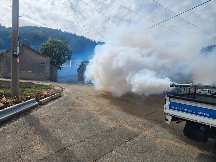 강진군보건소는 장마가 소강상태를 보인 지난 19일부터 11개 읍·면과 함께 환경 점검 실시와 함께, 취약지에 대한 방역소독을 적극 시행하고 있다.