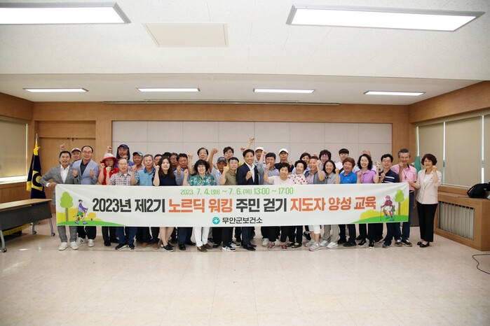 무안군은 활력 넘치는 건강한 도시 무안 조성을 위해 ‘워커블시티 무안’을 선포한 바 있으며, 이에 발맞춰 노르딕 워킹 주민걷기 지도자 양성 교육을 진행했다.