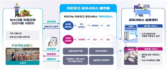 방문형 저온창고 공유서비스는 도심 내 유휴공간에 저온창고 실증센터를 구축하고, 저온창고가 필요한 수요자가 이곳을 직접 방문해 원하는 기간만큼 신선식품을 보관하는 서비스다.