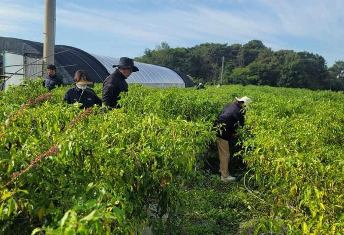 | ▲ 영암군 공직자, 미암면 고추 재배농가 일손돕기 봉사 활동 / 영암군 제공 |
