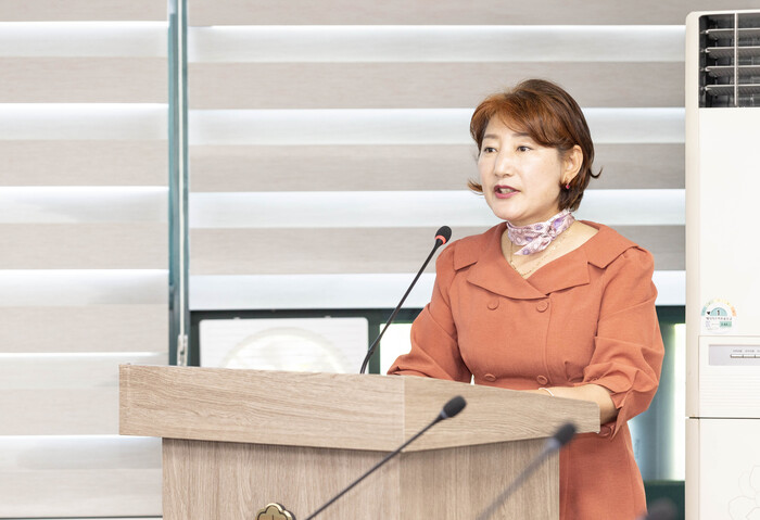 | ▲ 안산시의회 현옥순 의원이 대표 발의한 ‘안산시의회 교섭단체 및 위원회 구성과 운영에 관한 조례 개정안’이 19일 제290회 제1차 정례회 의회운영위원회에서 수정안 가결됐다. 사진은 앞서 3일 조례안에 대해 제안 설명을 하고 있는 현옥순 의원의 모습 /사진제공=안산시의회 |