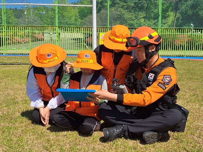 | ▲ 강진소방서, 어린이 드론감시단원 대상 드론교육 / 강진소방서 제공 |