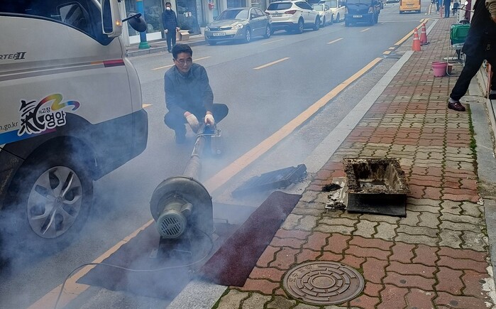 영암군보건소는 이날 영암읍 시가지 약 820m 구간 내 맨홀과 하수구에 서식하는 깔따구를 제거했다.