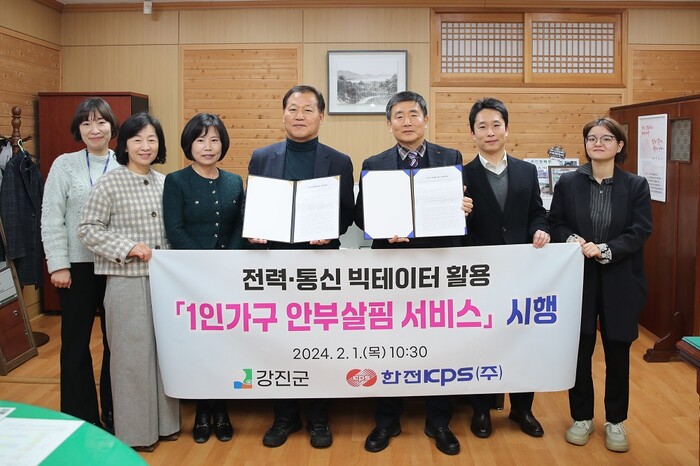 [강진=정찬남 기자] 전남 강진군(군수 강진원)은 한국전력공사(광주전남본부장 강유원)와 ‘1인가구 안부살핌 서비스’ 운영을 위한 계약을 지난 1일, 체결했다.