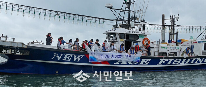| ▲ 강진군, ‘2025 강진피싱마스터스’를 앞두고 지난 17일 해역의 어족자원 보전과 생태계 균형 유지를 위한 주꾸미 치어 3만 4천 마리를 대구면 해상에 방류 / 강진군 제공 |