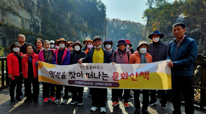 | ▲ 의왕시 오전동주민자치회는 지난 11월 6일, 오전주민돌봄하우스 어르신들의 정서적 안정과 여가 활동 지원을 위한 ‘행복을 찾아 떠나는 문화산책’ 행사를 진행했다 /사진제공=의왕시 |