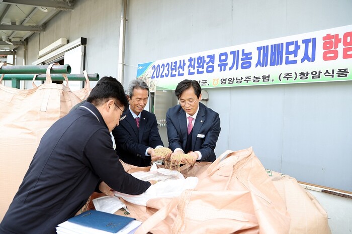 영암군은 항암쌀 계약 재배를 위해 친환경 벼 재배 단지 30.8ha를 시범 지구로 지정하고, 선정된 19농가가 재배했다.