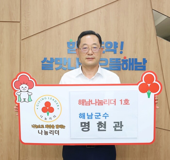명현관 해남군수는 “어려운 이웃과 함께하는 따뜻한 나눔 문화를 만들어 가고자 해남나눔 리더 가입을 결정했다”며 “나눔리더로 나눔을 실천하고 지역사회 내 나눔문화가 더 확산되길 바란다.”고 말했다.