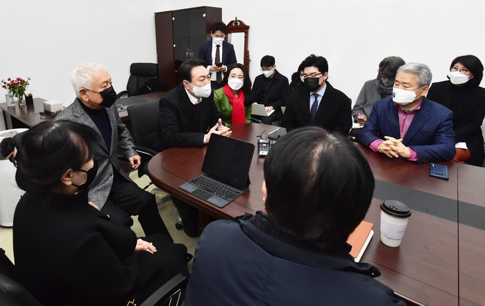 다만 윤 후보는 신 대표 영입에 반발하는 일부 지지층을 의식한 듯 “국민의힘 후보 직속 선대위에 기존 국민의힘과 생각이 다른 분들이 많이 와서 정체성이 흔들리는 것 아니냐는 얘기들도 많이 하지만 저는 그렇게 생각하지 않는다”며 “서로 생각이 다른 사람들이 같은 정치체계, 정당 안에 있으면서 결론을 도출해 나가야 민주주의를 실현하는 정당이 되는 것”이라고 강조했다.