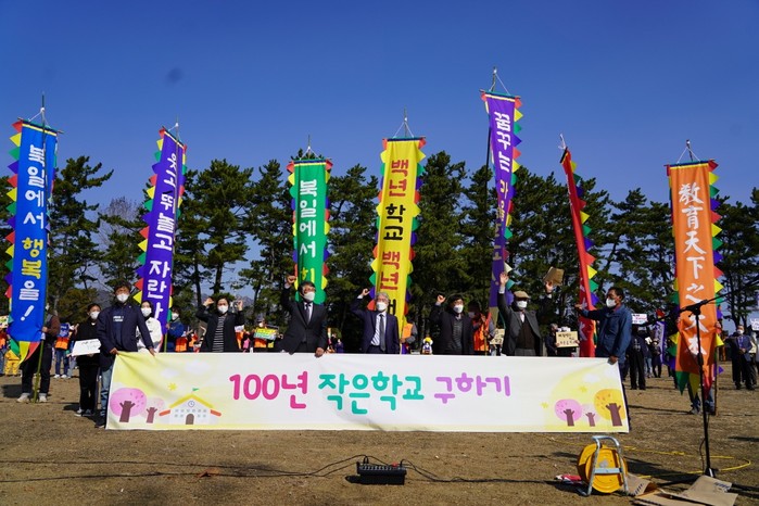 | ▲ 해남군 북일면 북일초 작은학교 활성화 추진위, 작은 학교 살리기 캠페인 퍼포먼스 (2021.11.3) 자료 사진 / 해남군 제공 |