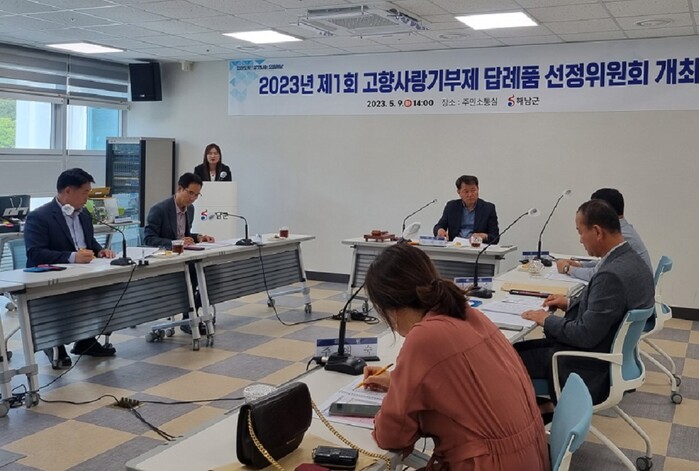| ▲ 해남군, 지난 9일 해남군청 주민소통실에서 2023년 제 1회 고향사랑기부제 답례품 선정위원회 개최 / 사진 자료=해남군 제공 |