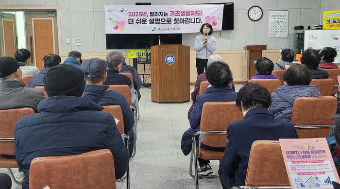 2025년 기초생계급여 기준 완화로 수급 대상자가 확대될 전망이다. 강진군은 군민에게 실질적인 혜택으로 이어질 수 있도록 복지회관을 중심으로 현장 홍보를 실시해 주민들에게 복지 정보에 대한 접근성을 높이고 있다.