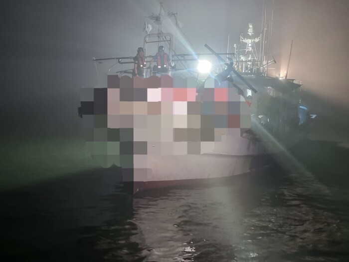 이날 오전 4시 24분에 해경 경비함정이 현장에 도착 즉시 사고 선박에 올라타 승선원(8명)전원 안전확보 및 현장상황 파악, 침수여부 확인 등 안전조치와 함께 인근해상 안전관리를 신속히 진행했다.