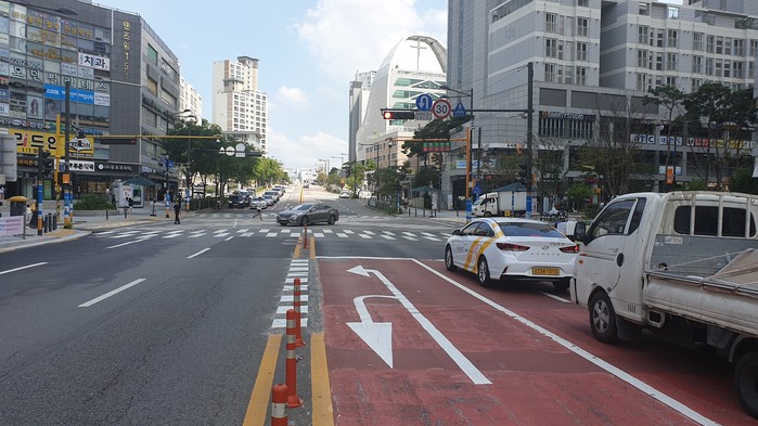 특히 유턴차로 확보를 위해 보도 및 자전거 도로 선형개선과 주변 가로수, 가로등, 무인교통단속카메라 이설 공사 시행 후 차로 재조정, 유턴차로 노면표시 신설, 교통안전표지판 설치공사를 함께 시행했다.
