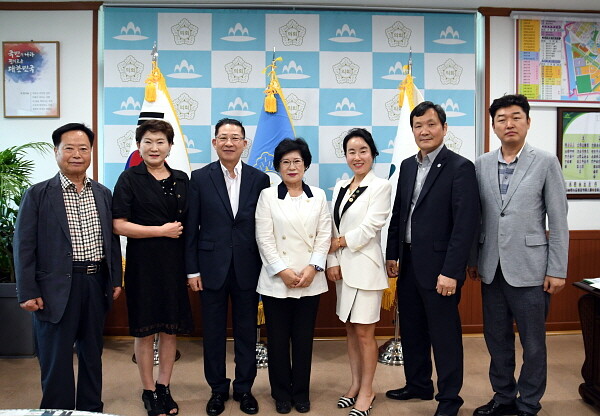 | ▲ 11일 전경애 의장이 의회 의장실에서 미추홀구 주민자치협의회 임원진과 ‘주민자치 활성화를 위한 간담회’를 갖고 기념촬영을 하고 있다. (사진제공=미추홀구의회) |